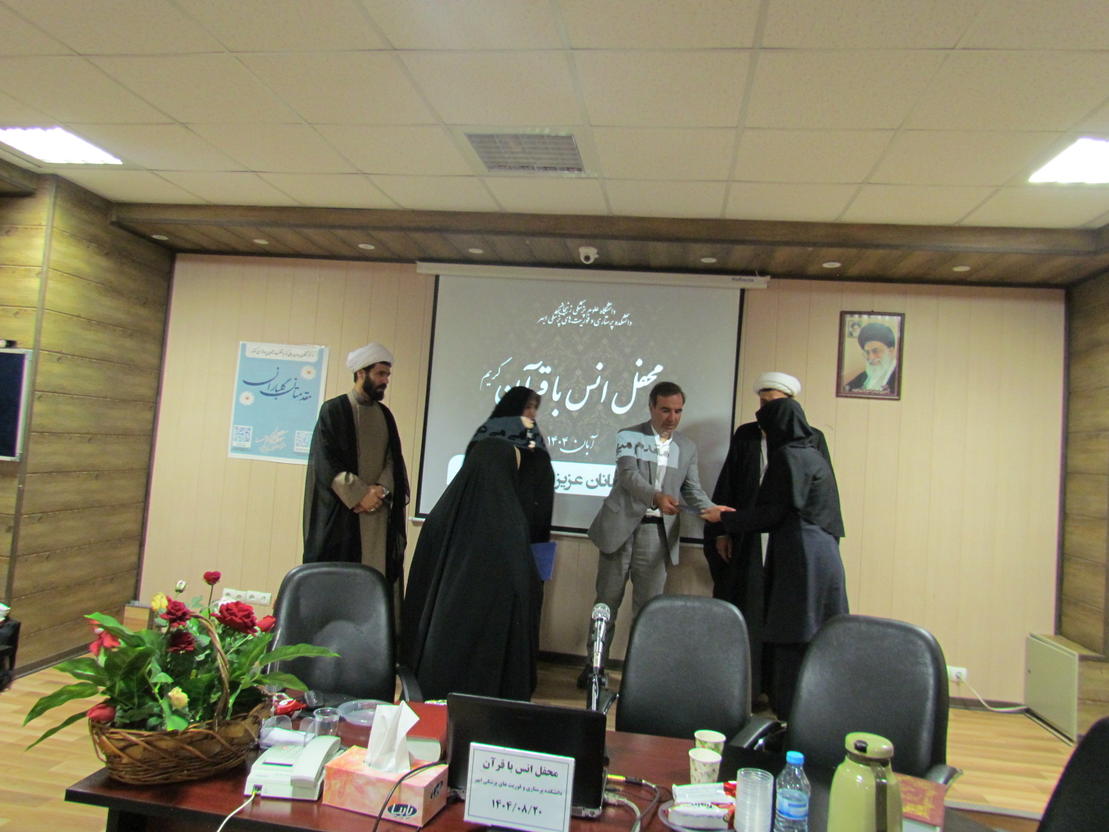 به مناسبت هفته قرآن و عترت در دانشگاه محفل انس با قرآن روز سه‌شنبه مورخ 1404/08/20 در سالن اجتماعات دانشکده پرستاری ابهر با تلاوت قرآن توسط قاری مدعو، سید صادق کاظمی آغاز شد . سپس سیده فریبا شرفی سرپرست دانشکده پرستاری ابهر با خوش‌آمدگویی به مهمانان و حاضرین، از حضور دکتر نقی لو، مسئول نهاد نمایندگی مقام معظم رهبری در دانشگاه و هیئت همراه و دکتر محمدی رئیس بیمارستان الغدیر ، تشکر کرد. حجت‌الاسلام نقی لو در سخنانی معنوی و پربار، بر اهمیت انس با قرآن و نقش آن در هدایت زندگی فردی و اجتماعی تأکید کرد و گفت: «قرآن کریم به عنوان کتاب هدایت و نور، بهترین راهنمای زندگی برای همه اقشار جامعه به ویژه دانشجویان و اساتید است و برگزاری چنین محفل‌هایی موجب ترویج فرهنگ قرآنی و انس بیشتر با آموزه‌های الهی می‌شود.» در ادامه مراسم ، یوسف قنبری رییس اداره قرآن و عترت دانشگاه آیاتی از قرآن مجید را تلاوت نمودند و در پایان مراسم، از فعالان حوزه قرآنی و پرستاران نمونه دانشکده با اهدای لوح سپاس تقدیر به عمل آمد. این محفل با حضور اساتید، کارکنان و دانشجویان ، فضایی معنوی و فرهنگی فراهم آورد که نشان‌دهنده توجه ویژه دانشکده به ترویج آموزه‌های قرآن کریم بود.