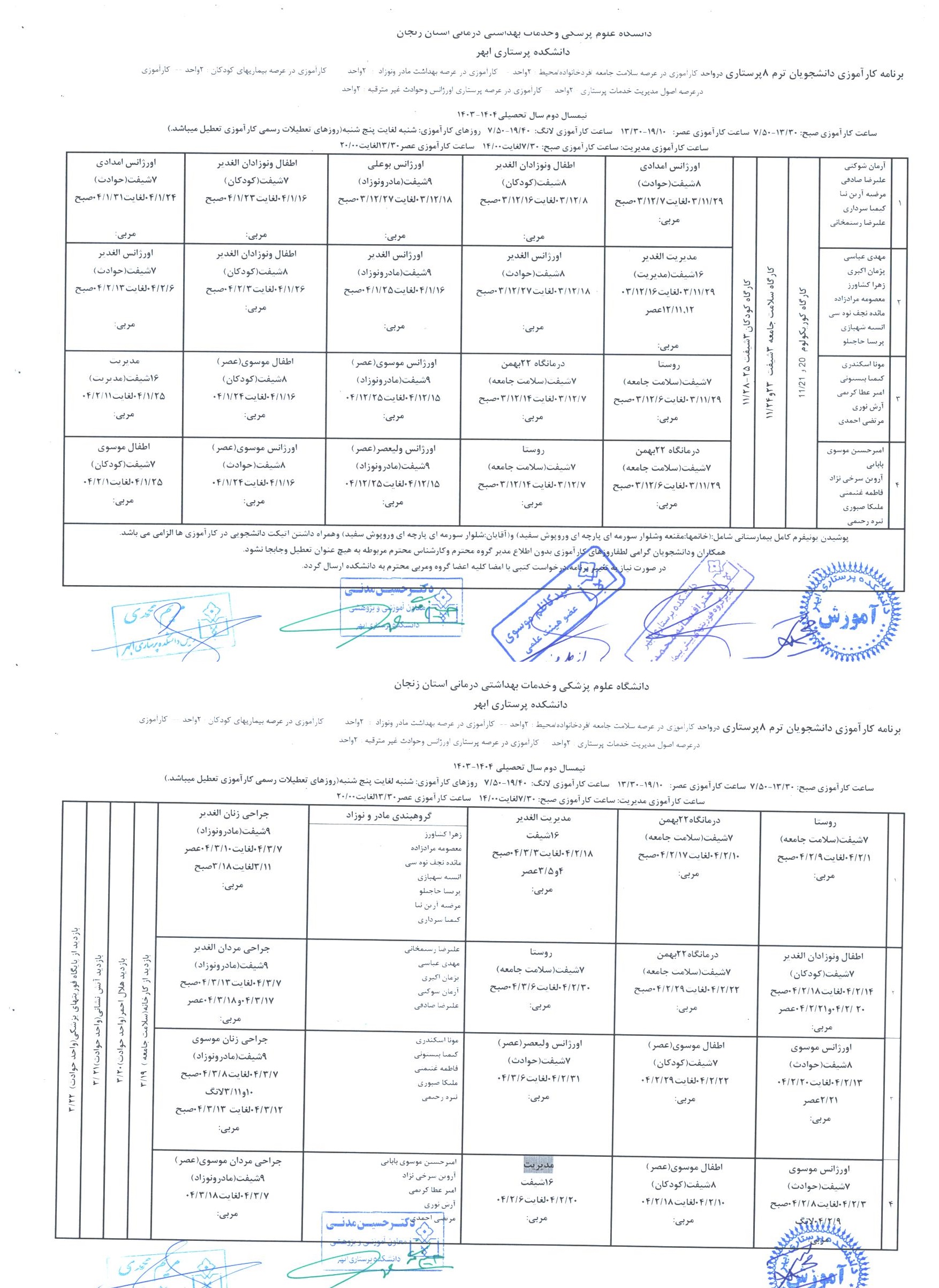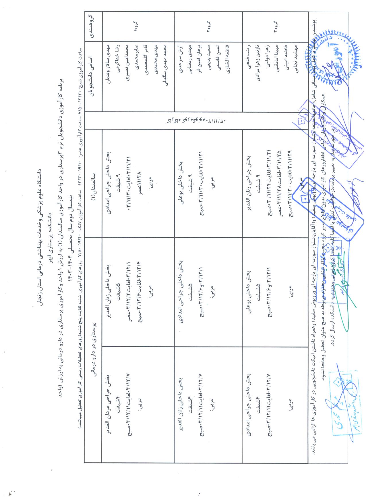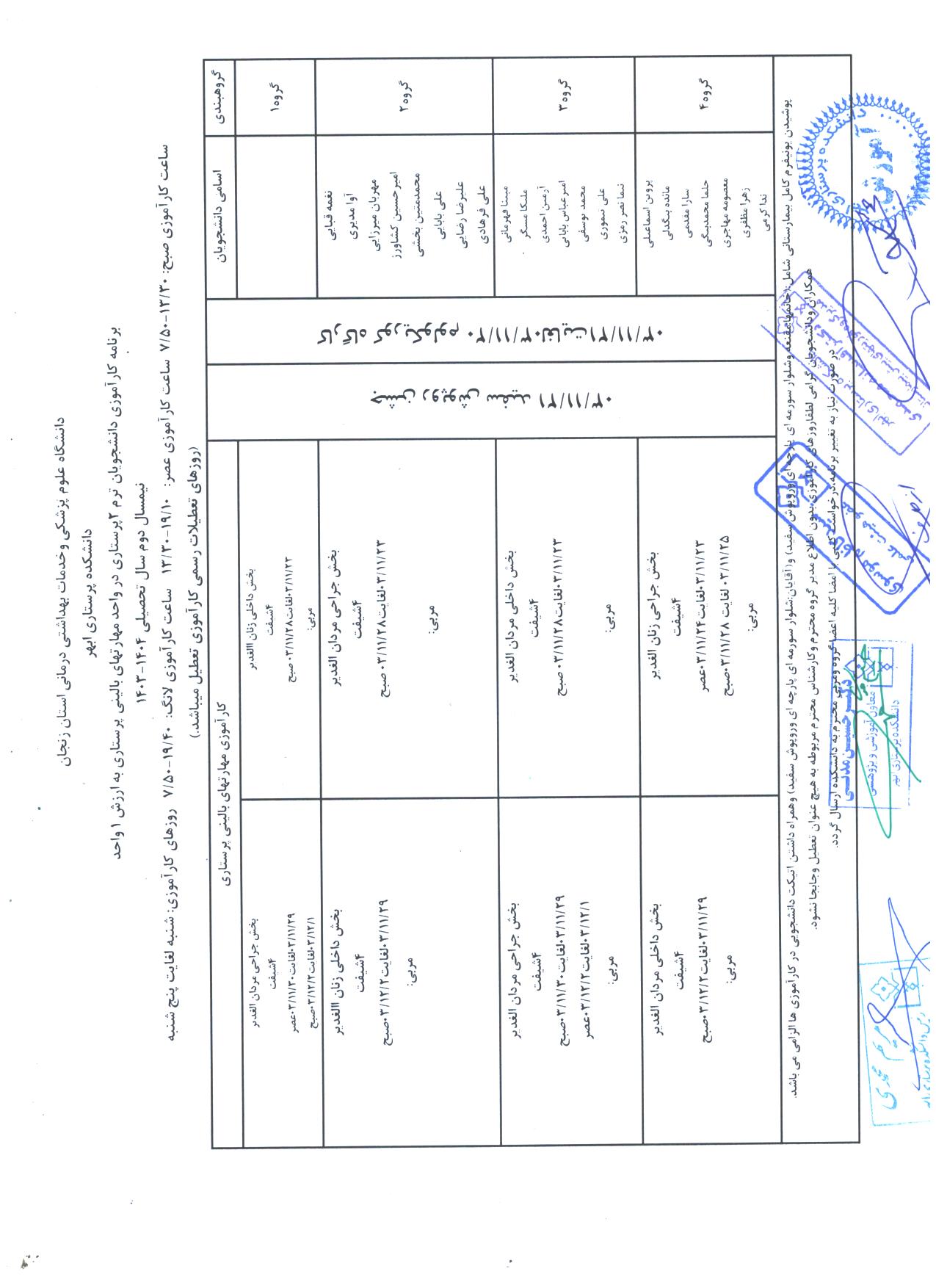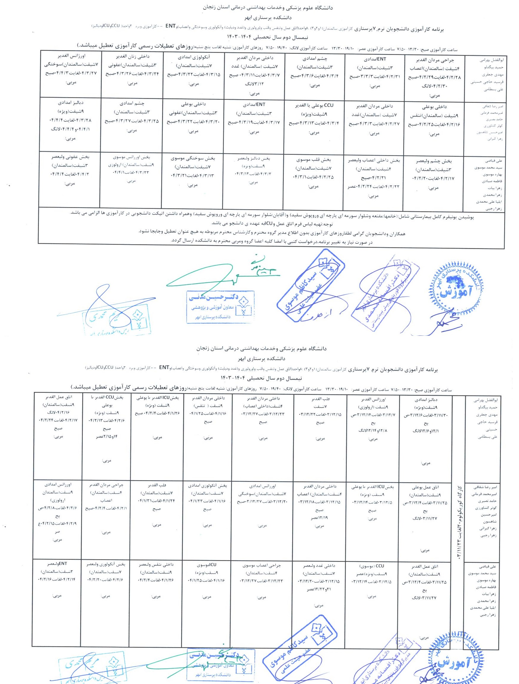 برنامه کارآموزی های نیمسال دوم سال تحصیلی 1404-1403