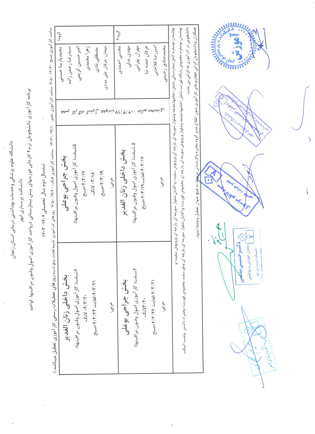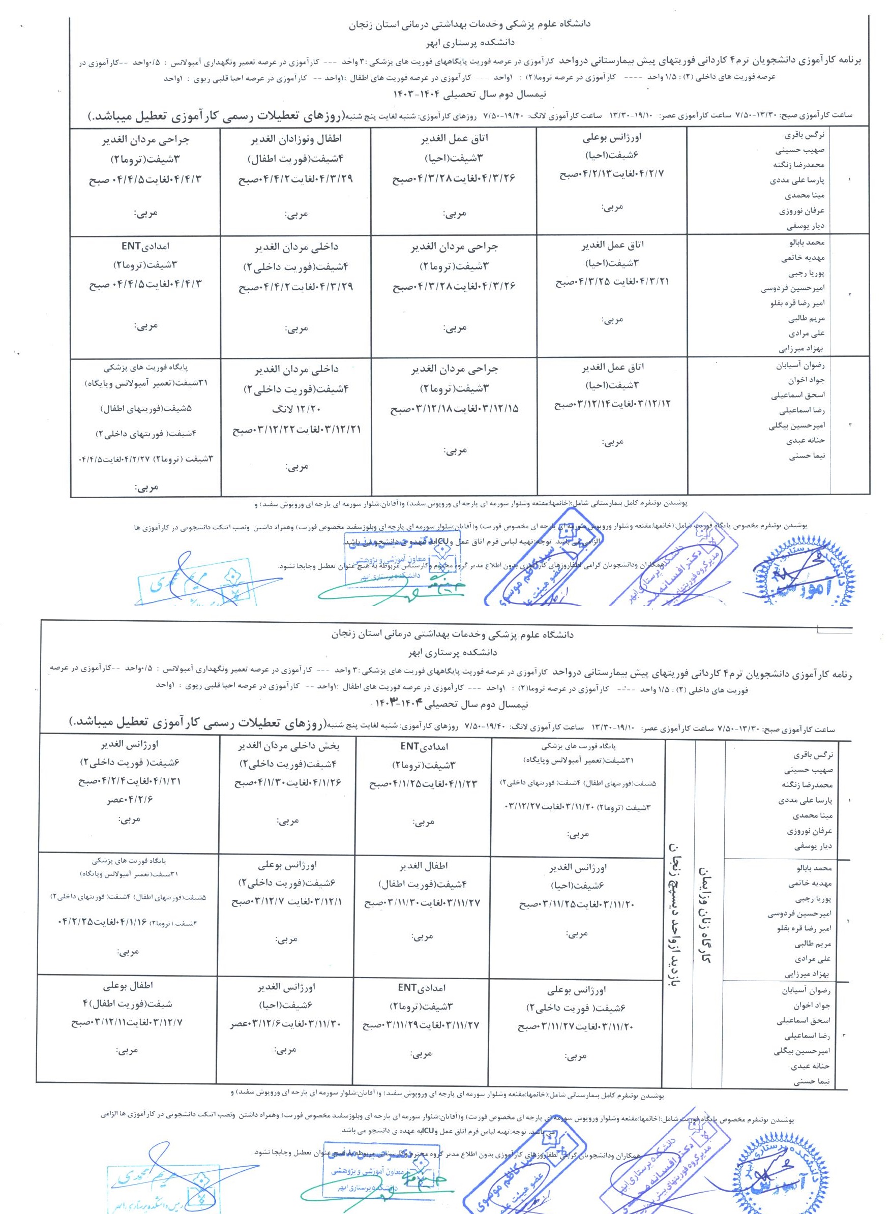 برنامه کارآموزی رشته فوریت های پزشکی نیمسال دوم سال تحصیلی ۱۴۰۴-۱۴۰۳