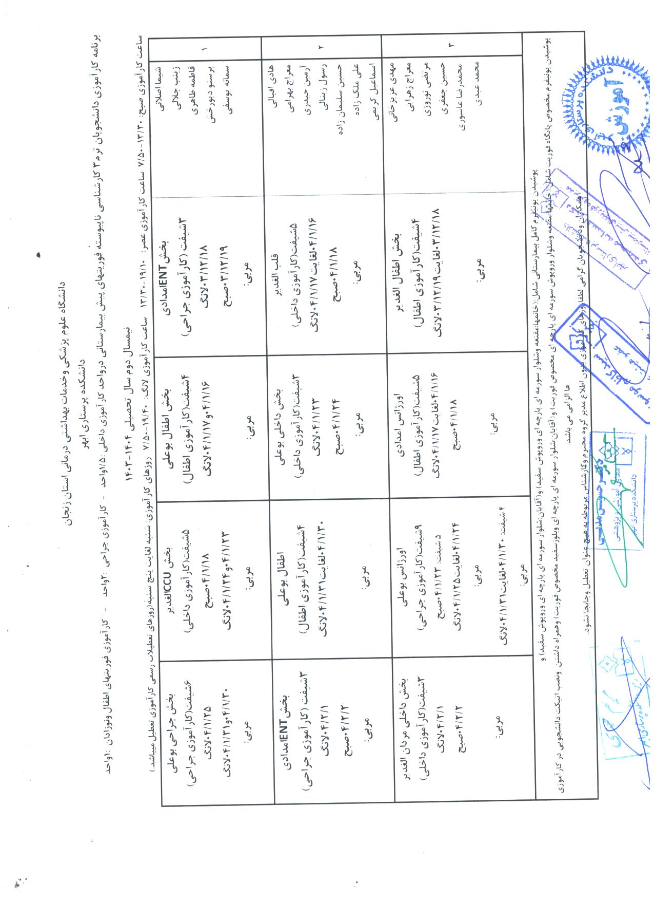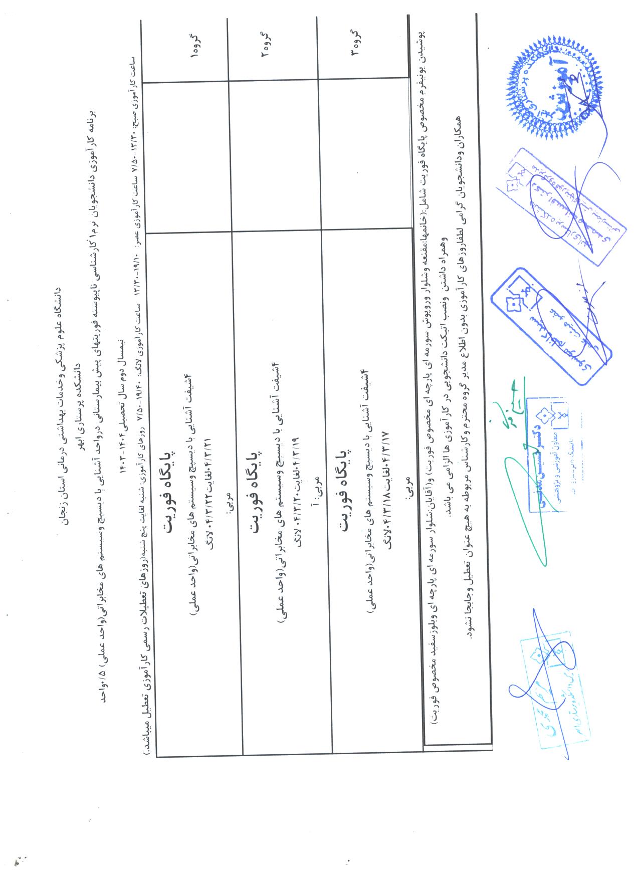 برنامه کارآموزی رشته فوریت های پزشکی نیمسال دوم سال تحصیلی ۱۴۰۴-۱۴۰۳