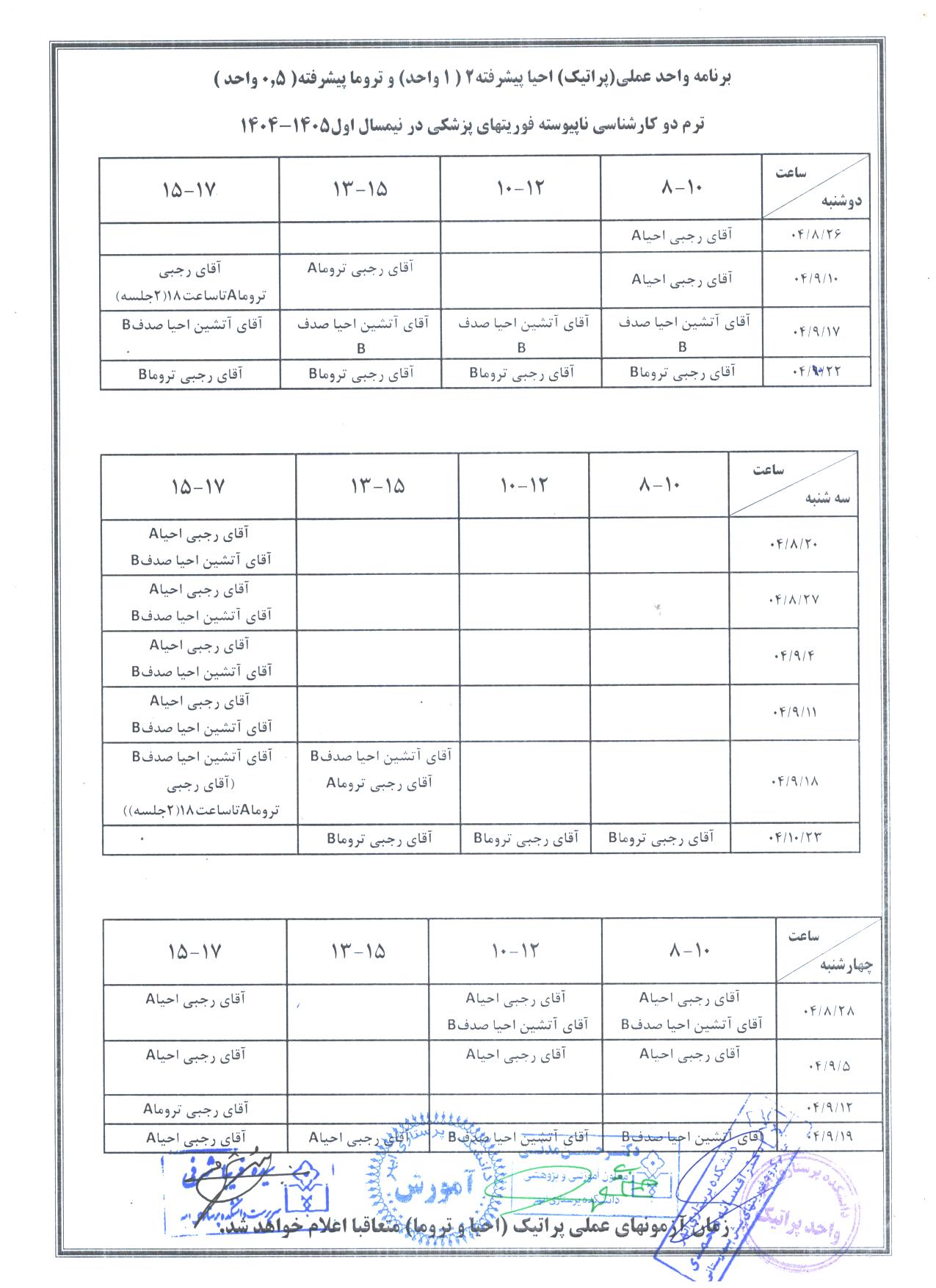برنامه ترمیک نیمسال اول سال تحصیلی 1405-1404