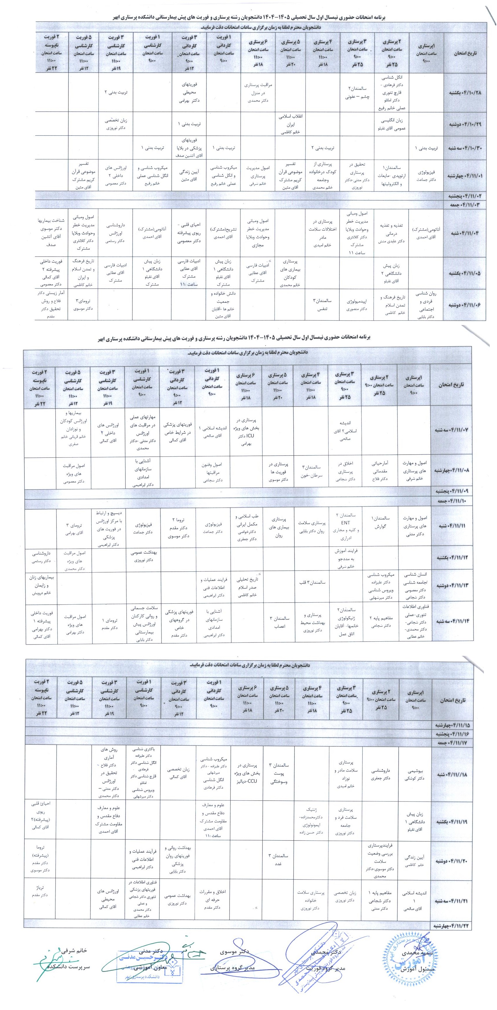 برنامه ترمیک نیمسال اول  سال تحصیلی 1405-1404